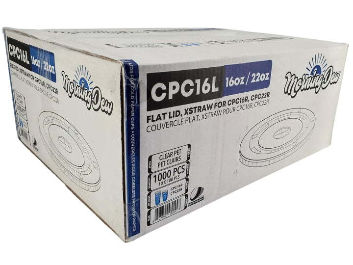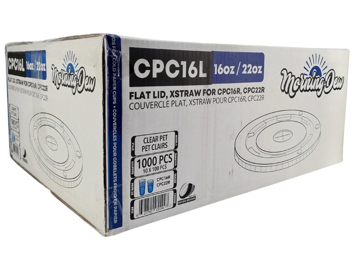 Morning Dew - X Straw Flat PET Lid for 16,22oz Cold Paper Cups - 10 x 100 count
