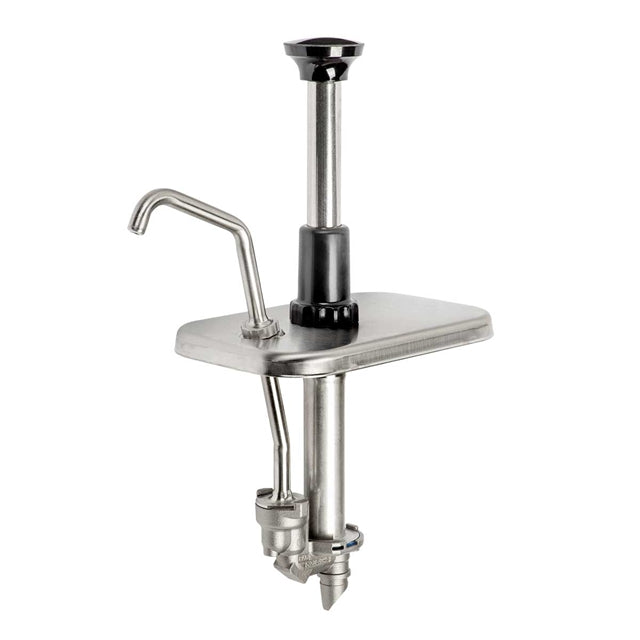 La pompe en acier inoxydable FPEC-200 distribue des portions précises de garnitures à partir de sachets populaires de 48 onces et de 16 mm dans votre armoire chauffée à surface inclinée, votre station ou votre puits pour pots de fontaine. Le coude du tube à décharge est incliné pour permettre de servir sur une surface inclinée, comme une fontaine inclinée à 22º. Les portions s'ajustent par incréments de 1/8 oz, avec une portion maximale de 1 oz par coup. Assurez-vous que les utilisateurs peuvent identifier rapidement le contenu en spécifiant un bouton de pompe coloré et gravé lors de la commande, sans frais supplémentaires ; le noir est standard.