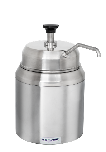 Distribuez des condiments fins comme un crémier non laitier à partir d'un distributeur élégant en acier inoxydable poli. Le récipient isotherme contient un pot de 3 pintes (2,8 L) d'aliments froids à une température de service sûre pendant jusqu'à quatre heures avec les blocs de glace inclus.