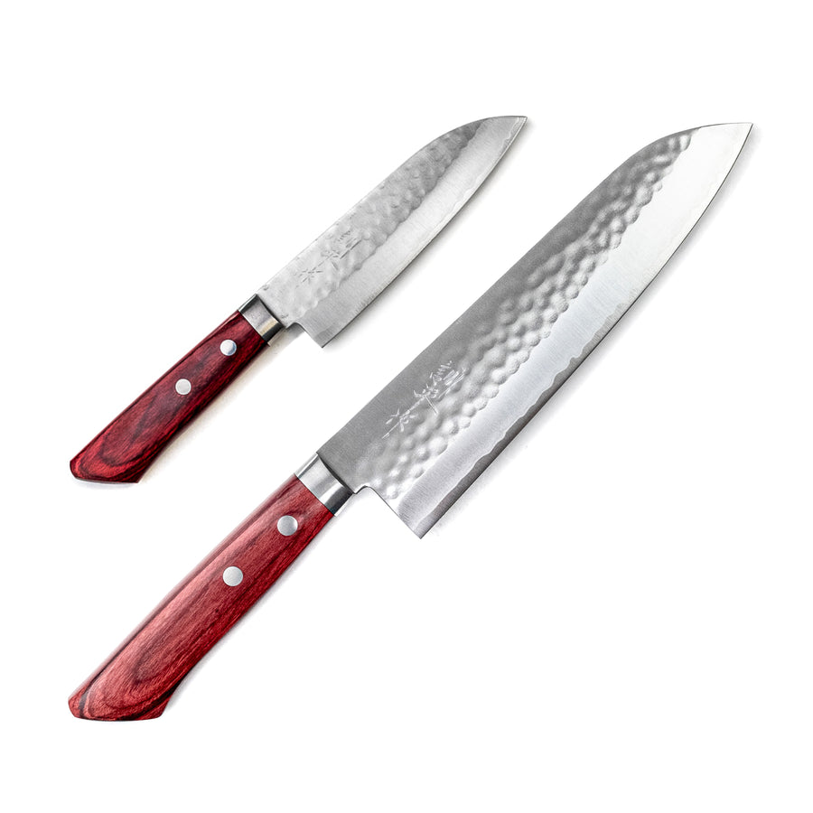 Ce coffret comprend un couteau Nakiri de 165 mm (6,5 po) et un couteau Petty de 135 mm (5,5 po). Ils constituent un excellent duo pour tout cuisinier amateur souhaitant améliorer son équipement de cuisine. Fabriqués en acier inoxydable VG-1 Gold, ils sont résistants à la rouille et ne se décolorent jamais.