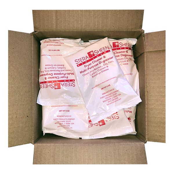 Nettoyant pour friteuse et dégraissant polyvalent Stera-Sheen Red Label, sachets de portions faciles à utiliser, FG RED246 de Purdy Products, caisse de 24 sachets de 6 oz - Distribution au Canada