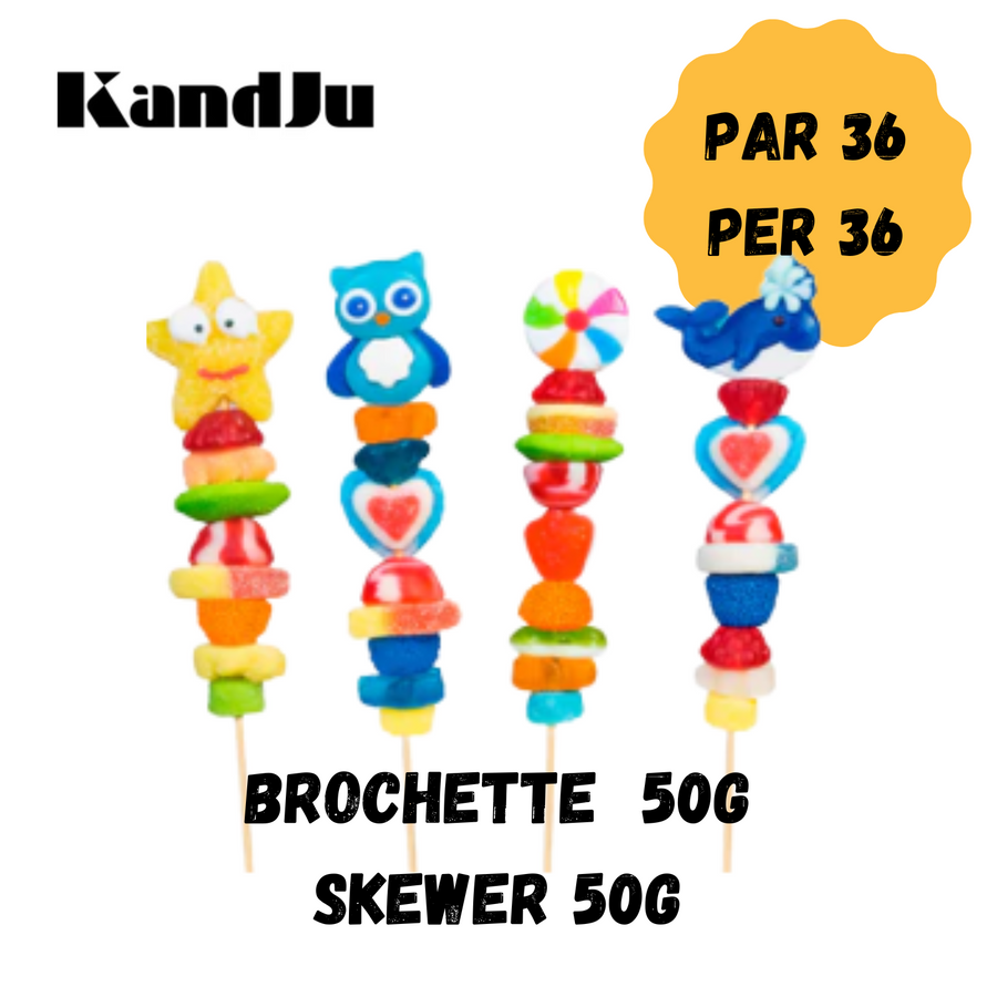 Kand Ju Candy Skewers - Case of 36 x 50g Skewers - Premium Candies & Gummies