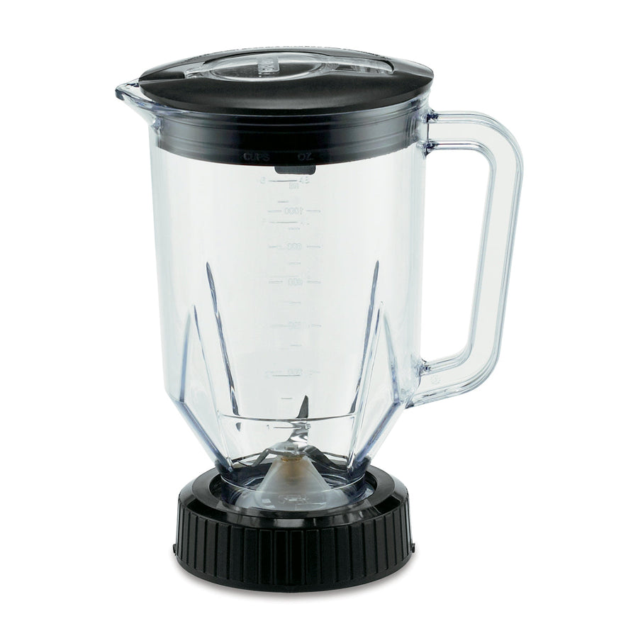 The Waring CAC29 replacement polycarbonate blender jar is for use with the 48 oz., two-speed bar blenders. The replacement jar comes with the 48 oz. jar, a lid, and replacement blades.